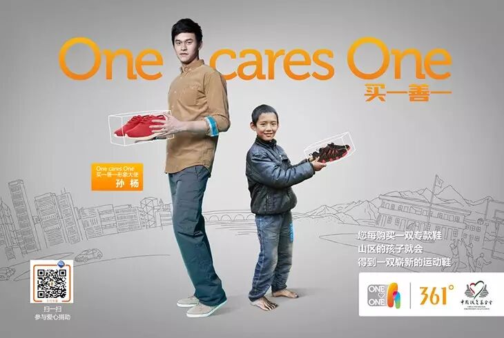 “买一善一”是消费者每购买一件361°指定的公益专款鞋,就同步以消费者名义向受捐赠的贫困小学生捐出一双适合其尺码的鞋子。受捐赠小学生的联络地址、鞋子尺码等数据信息,由扶基会的贫困儿童数据库提供。天猫商城负责鞋子的递送和销售信息的采集。每当有消费者购买了一双公益鞋,系统就会将匹配的受助学生的联络地址、尺码信息发送到他的手机上。在鞋子送达孩子手中后,消费者还会收到受助孩子寄出的回音卡片。