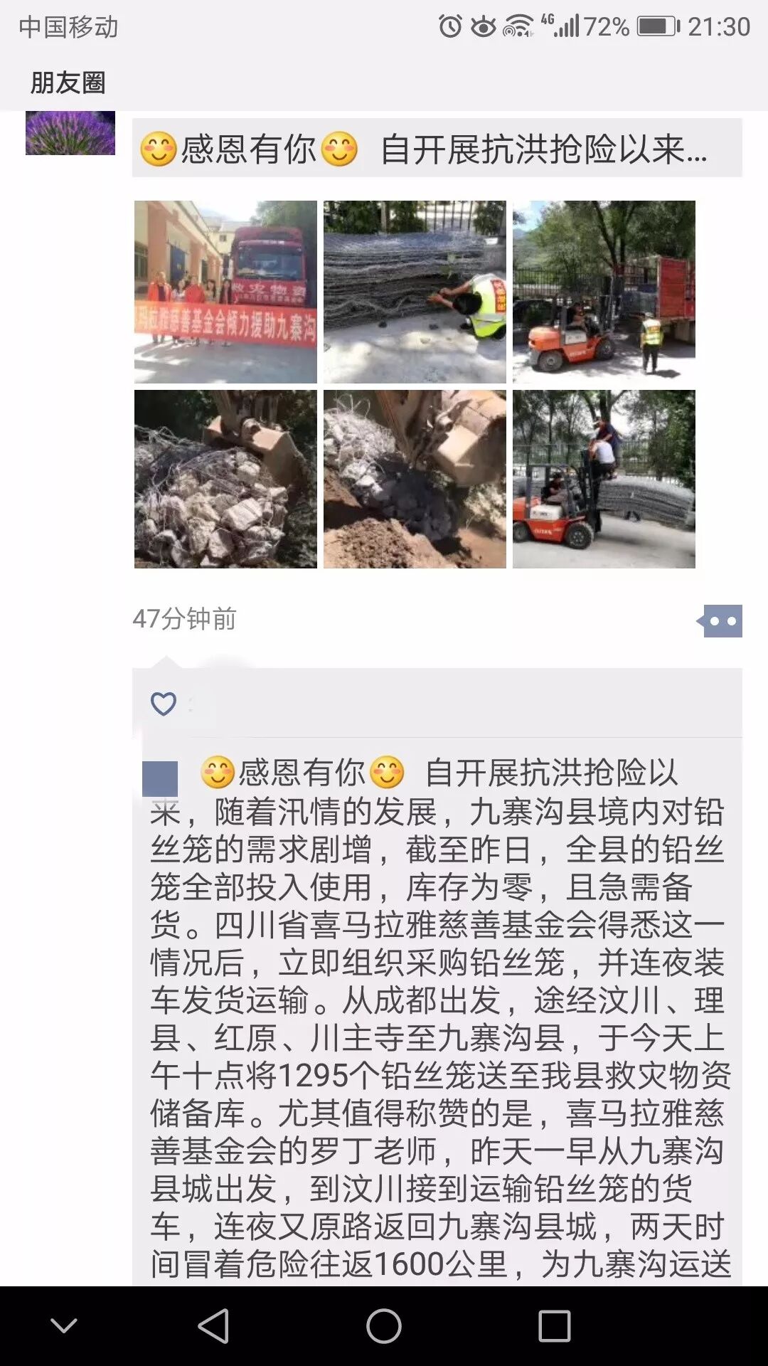 得知这一情况后,四川喜马拉雅慈善基金会于7月10日起紧急启动“四川抗洪行动”,派出工作小组第一时间前往灾区一线组织救灾工作,并紧急从四川省成都市总部调拨第一批急救物资——总额十多万元的铅丝笼驰援灾区。