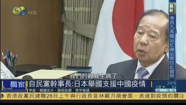 80岁的日本自民党干事长二階俊博,在接受采访时说:“日本要以举国之力,全力支持中国”。