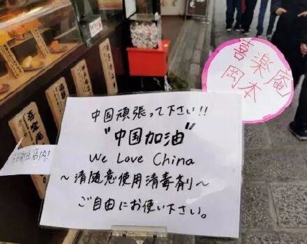 而在日本国内,不少商家纷纷打出了“中国加油”、“武汉加油”的字样。
