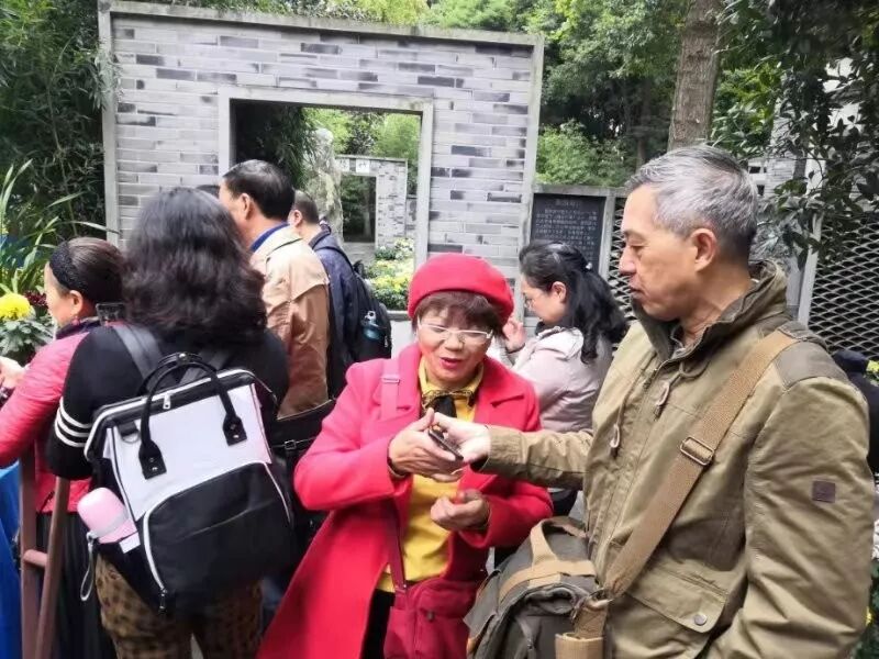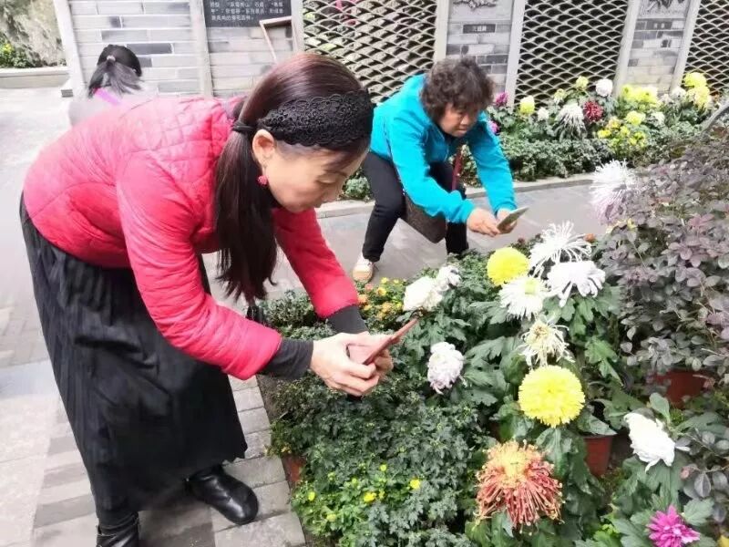 刘老师现场教学并指导,通过不同角度拍摄让残友们慢慢的体会怎么利用不同方向光线下取景的重要性。残友们都特别认真拍摄菊花,摄影过程中并请教刘老师拍摄角度是否合适。残友们围成一圈举起手机拍摄的样子成了人民公园一片美丽的风景。
